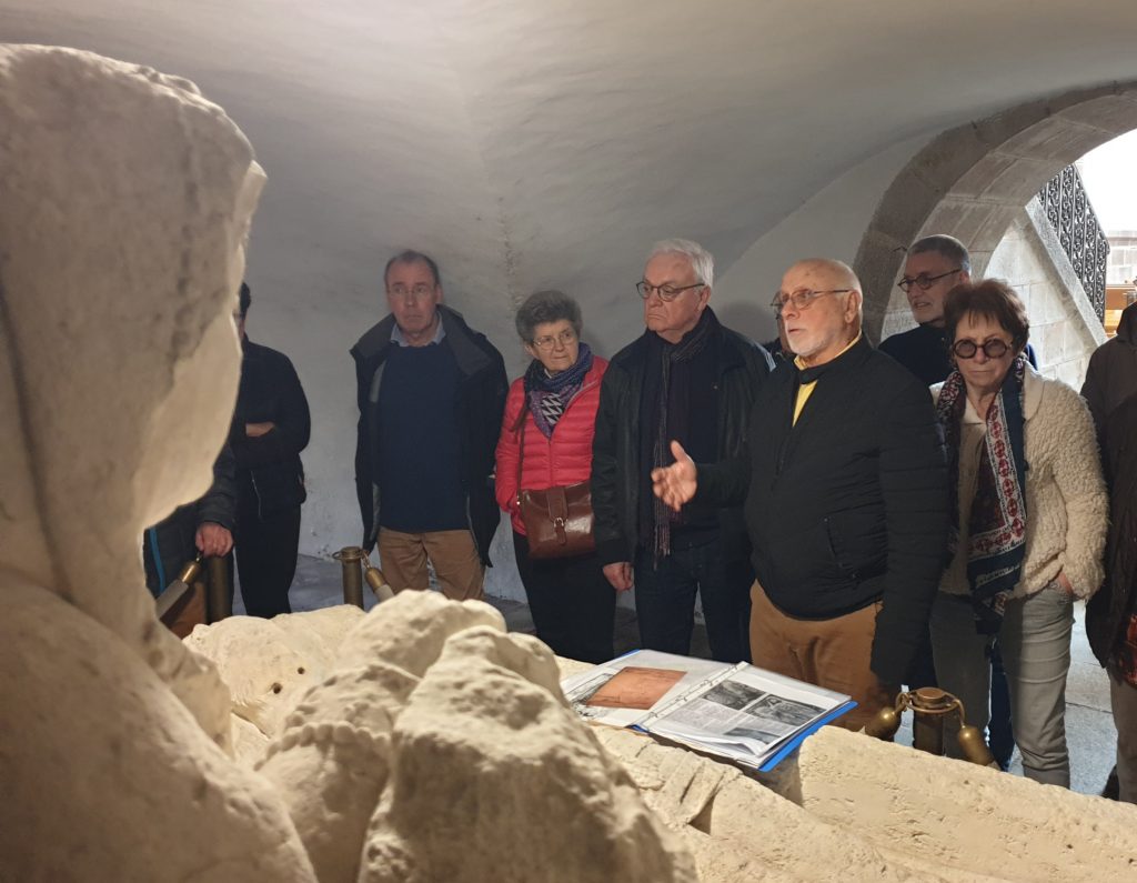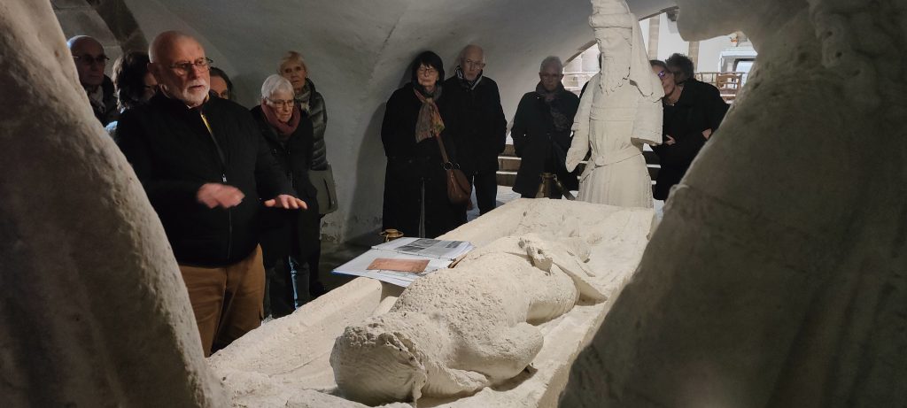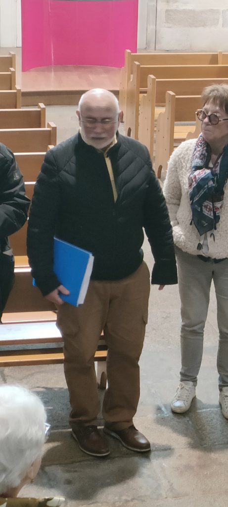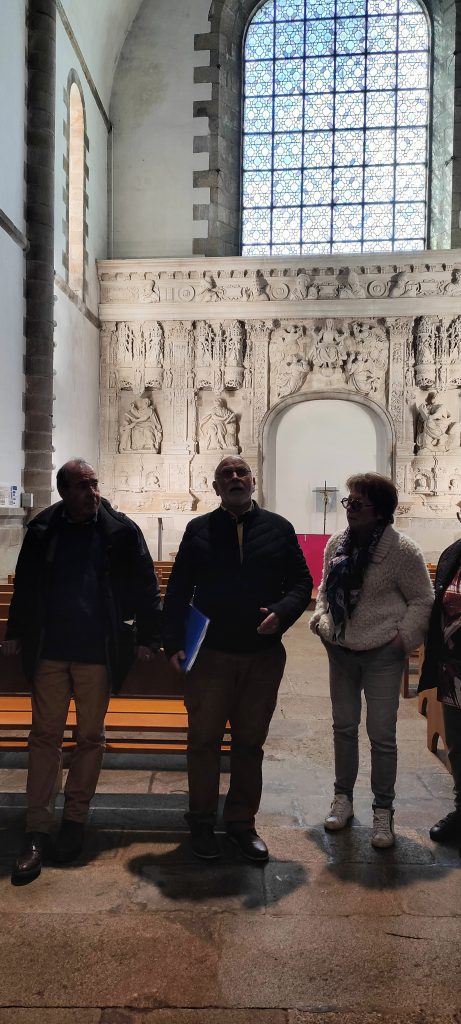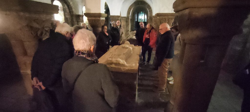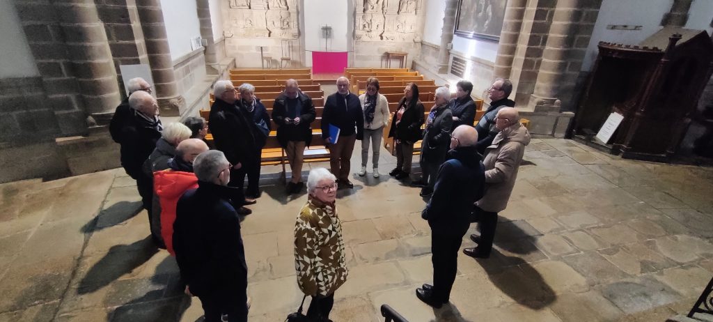 Samedi après-midi, comme prévu à l’intention des adhérents, a eu lieu la viste guidée de Sainte-Croix à Quimperlé proposée par Alain Pennec. Vingt cinq participants ont pu apprécier le très beau discours de notre président centré sur l’architecture romane et l’histoire d’un édifice remarquable remanié au XIXe siècle par l’architecte Bigot. Ci-joint une photographie illustrant cette sortie.